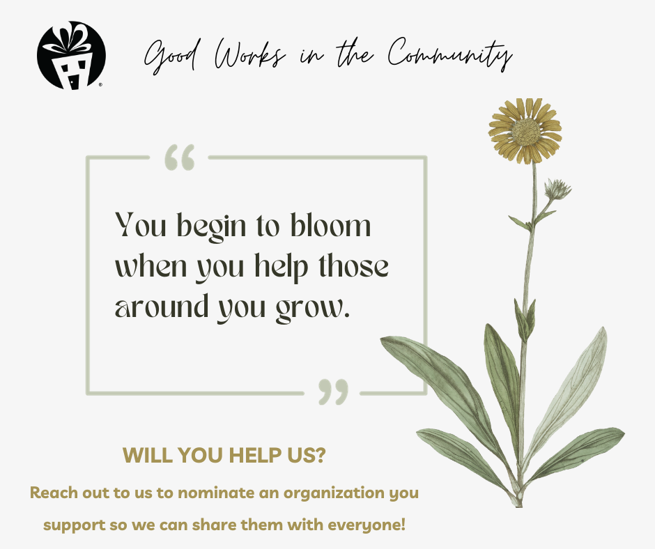 We are always looking for organizations to share that are non-profits, charitable or companies doing Good Works in the Community.